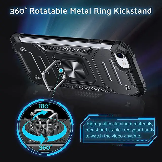 Material: Polycarbonate + TPU + Metal. Compatible with Apple iPhone SE 3 (3rd Generation) / SE 2 (2nd Generation) / iPhone 8 / iPhone 7.