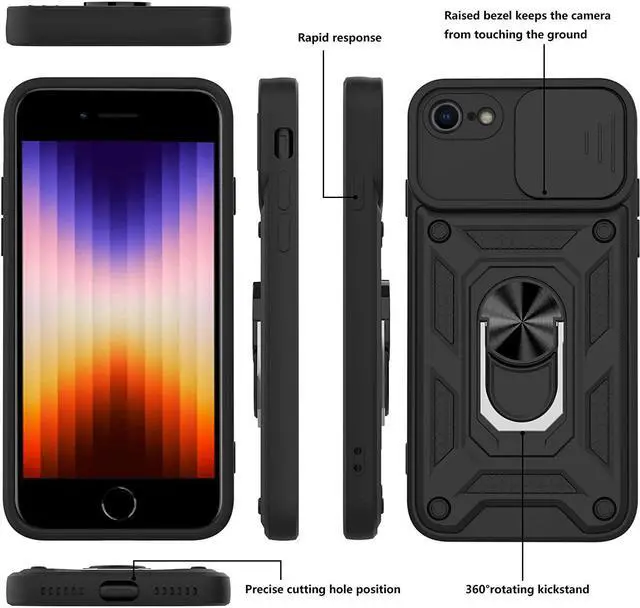 Material: Polycarbonate + TPU + Metal. Compatible with Apple iPhone SE 3 (3rd Generation) / SE 2 (2nd Generation) / iPhone 8 / iPhone 7.