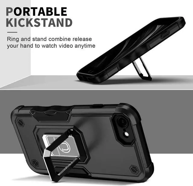 Military Grade Shockproof Hybrid Armor Case with Ring Holder for iPhone SE (3rd gen & 2nd gen) and iPhone 8/7 - Black