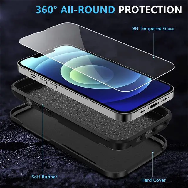 Features: Compatible with Apple iPhone 14. Extensively drop tested, so you can feel reassured that your device is well protected. Featuring a robust multi-layered design, the Tuff Case provides extreme protection for your device. This hard-wearing tough case safe-guards your phone against whatever life can throw at, keeping it secure at all times even in the most extreme of conditions. A soft rubberized TPU inner core tightly grips to your phone while absorbs shock and cushions the phone from drops and impact. Patented hybrid case with ridge polycarbonate hard shell for armor-like protection. Raised front bezel and camera opening prevent scratches to the screen and camera lens. Textured rubbery interior for impact resistant protection. Intuitive button covers for a tactile experience. 9H hardness tempered glass screen protector prevents scratches without compromising sensitivity. Precise cutouts provide full access to your phone’ s important features, ports and buttons.