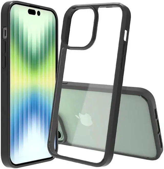 Features: Compatible with Apple iPhone 14 Pro Max. Single-piece, soft rubber and hard polycarbonate infused case. Reinforced corners provide excellent protection where it's most needed. Soft rubber bumper for enhanced grip and scratch protection. Clear transparent hard polycarbonate backing design for rigid support and scratch protection. Slim fitting design adds no very little bulk and fits perfectly in your pocket.. Easy to slip on your device, yet stays on securely. Access to all controls and ports. Supports wireless charging with most Qi-certified devices.