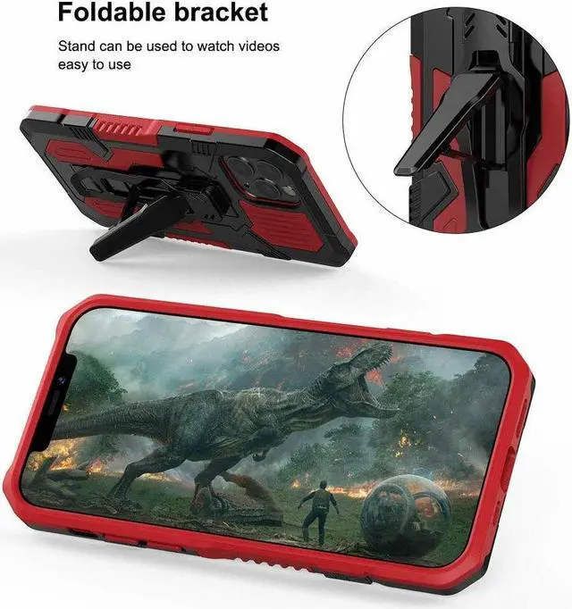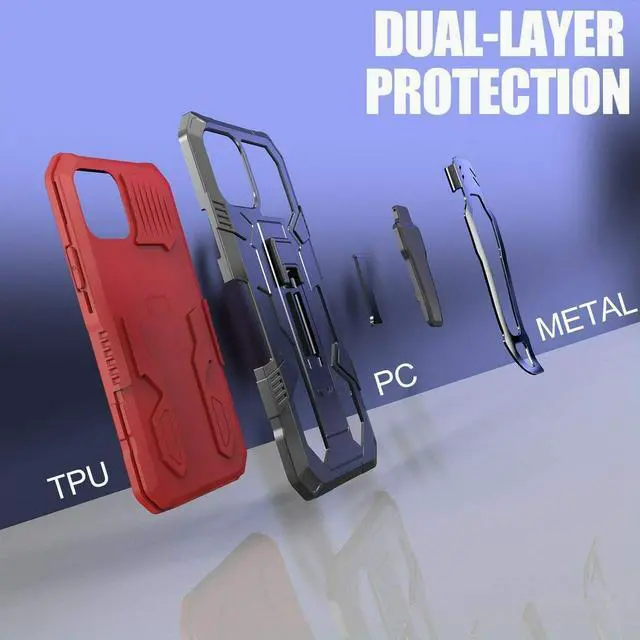 Features: Compatible with Apple iPhone 14 Pro. Military Standard Shock Test MIL-STD 810G- 516.6 Protection. The case endured 26 drops (at 48in) on all 6 faces, 12 edges and 8 corners of the device and sustained zero damage to the appearance and internal hardware of the phone itself. Integrated metal belt clip which can liberate your hands. With it, you can clip the phone on the belt / the edge of the trouser pocket / or other places. Located at the back of the case is a super-convenient flip-out kickstand. Folding completely flat when not in use, the kickstand can be called upon at will, allowing you to effortlessly watch media at any time and in landscape mode. Featuring a robust multi-layered design, the case provides extreme protection for your smartphone. Extra cushioning points to all four corners to secure your device against all drops and bumps. Made from a special strong and lightweight durable material, providing you with long lasting protection for your smartphone without making it cumbersome. Raised front bezel and camera opening prevent scratches to the screen and camera lens. Built-in magnetic plate for using on magnetic car mount (car mount not included).