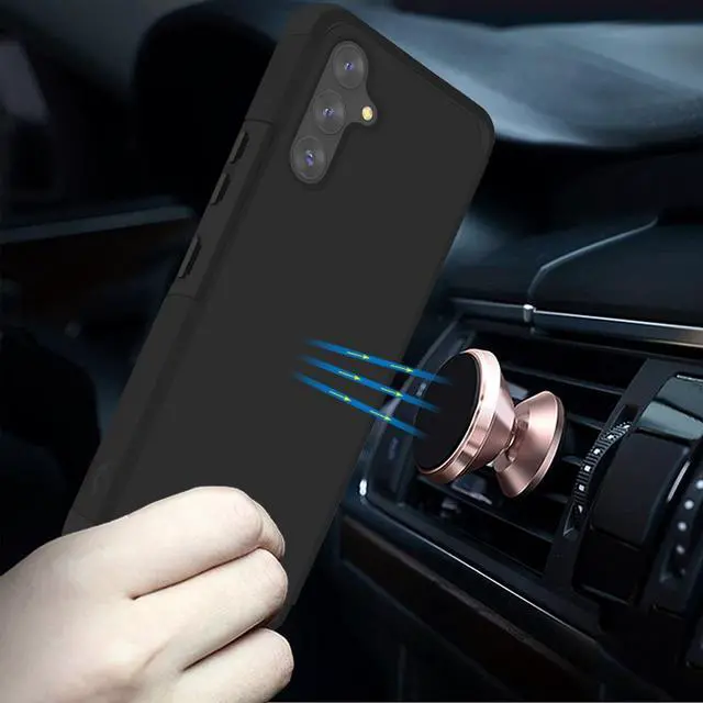 Layer 2: One-piece custom molded polycarbonate shell. 9 ft. drop protection to ensure safety from accident falls. The air cushion corners and bumper edges reduces impact force. Raised-edge bezel protects the screen and camera. Soft-touch finish. Scratch & discoloration resistant. Tactile buttons. Enjoy magnetic mount compatibility with the built-in metal plate. Precise cutouts provide full access to your phone’ s important features, ports and button.