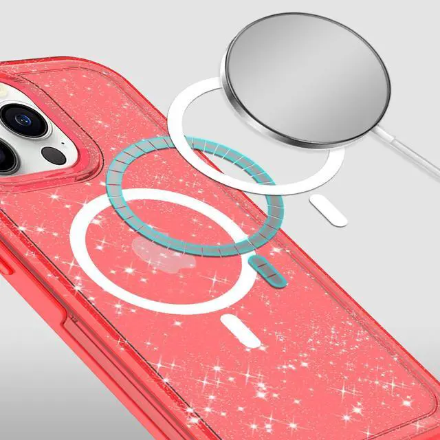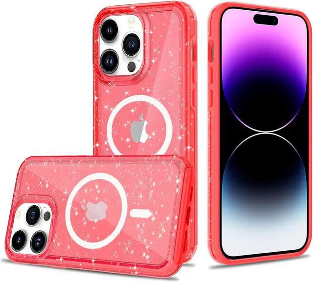 Features: Compatible with Apple iPhone 14 Pro. Designed to interact with Apple’ s MagSafe ecosystem. Built-in magnetic ring for strengthened MagSafe connections. Compatible with Apple MagSafe chargers and accessories so you can power up without removing the case. Decked out with flecks of glitter for extra sparkle. Single-piece, soft rubber and hard polycarbonate infused case. Slim and grip-friendly for everyday use. Soft rubber bumper for enhanced grip and scratch protection. 1.2 mm edge lip to protect your screen and camera lens from directly contacting surfaces. Anti-yellow material for longer-lasting clarity. Easy to slip on your device, yet stays on securely. Tactile buttons with absolute responsiveness. Antimicrobial case protection. Access to all controls and ports.
