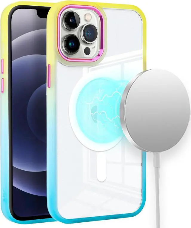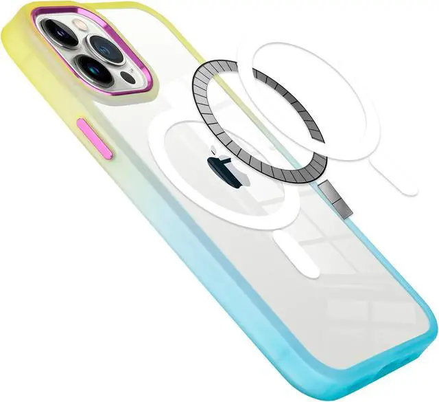 Features: Compatible with Apple iPhone 13 Pro Max. Designed to interact with Apple’ s MagSafe ecosystem. Built-in magnetic ring for strengthened MagSafe connections. Compatible with Apple MagSafe chargers and accessories so you can power up without removing the case. Replicating iPhone’ s hard back texture, this case brings a fabulous touch feeling. Reinforced the hard explosion-proof back panel and flexible TPU edge bumper to increase shock absorption and disperse impact. Gradient color bumper design. Crystal clear transparency flaunts original phone design. Raised lip helps protect the screen and camera against scratches from direct surface contact. Anti-yellow 100% clear case. It withstands the test of time and has breathtakingly high resistance to UV rays, sweat and oxidation of cosmetics. Non-slip coating for extra grip. Antimicrobial case protection. Slim, minimalist design grants full access to all ports and features.