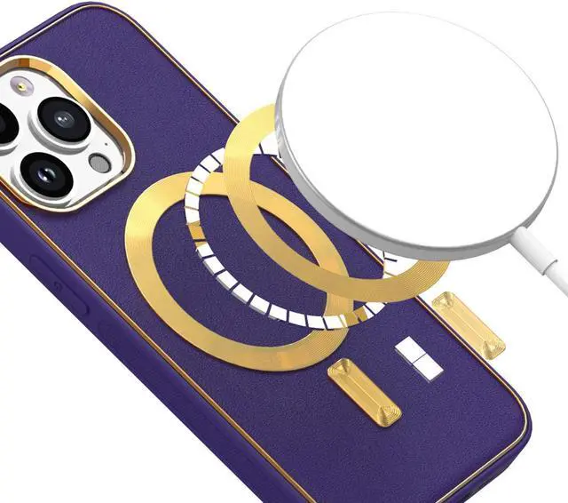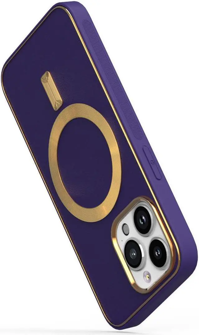 Features: Compatible with Apple iPhone 14 Pro. Designed to interact with Apple’ s MagSafe ecosystem. Compatible with Apple MagSafe chargers and accessories so you can power up without removing the case. Thanks to the case's design, your phone won't have added bulk all the way around, helping to keep your phone as slim and light as it was designed to be. The stylish leather finish not only feels great in hand, but it also provides excellent grip - reducing the risk of accidental drops and bumps. Premium TPU bumper material for durable flexibility. Front bumpers raised slightly above your screen act to protect your screen when placed face down or dropped. Custom gold color camera and MagSafe ring trim. Raised camera cut-out with integrated camera lens bumper protector protects the lens from scratches when placing your phone on flat surface. Embossed buttons for an easy, conspicuous press. Precisely cutouts to preserve full use of volume buttons, charger, camera, microphone, and all other ports.