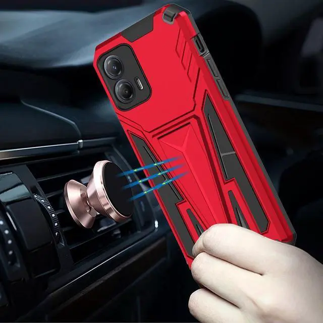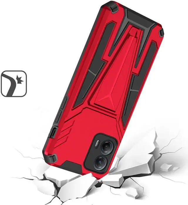 Features: Compatible with Motorola Moto G 5G 2023. Military Standard Shock Test MIL-STD 810G- 516.6 Protection. The case endured 26 drops (at 48in) on all 6 faces, 12 edges and 8 corners of the device and sustained zero damage to the appearance and internal hardware of the phone itself. Rugged composite case. Hybrid dual layered case protects from bumps, scrapes and drops. Reinforced corners are designed to deflect shock force away from your phone. Features an impact-resistant polycarbonate shell. Scratch resistant screen surround bezel. Made from a strong, durable lightweight material for long lasting protection. Textured fitting design adds no extra bulk and fits perfectly in your pocket. Located at the back of the case is a super-convenient flip-out kickstand. Folding completely flat when not in use, the kickstand can be called upon at will, allowing you to effortlessly watch media at any time and in any place. Integrated camera lens bumper protector protects the lens from accidental drops. Enjoy magnetic mount compatibility, as the kickstand also functions as a built-in metal plate. Cut-outs for the main ports and features of the phone; use your device with ease.