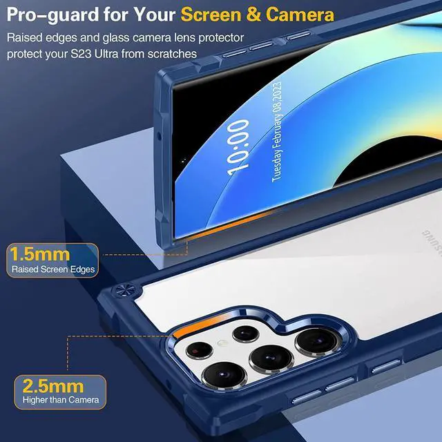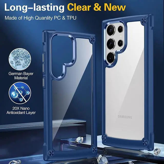 Features: Compatible with Samsung Galaxy S23 Ultra 5G. Extensively drop tested, so you can feel reassured that your device is well protected. Crystal clear case provides a slim fitting stylish design and reinforced corner shock protection against damage, keeping your device looking great at all time. Made from reinforced bonded thermopolyurethane and optical grade polycarbonate materials, which makes it flexible enough to absorb punishment but hard enough to resist potential damage. Designed to be slim, lightweight and strong - so you can be assured that this case will add virtually no extra bulk to your phone and will still fit in your pocket with ease. Raised bezels on the case protects your phone's screen and camera from scratches. independent metal buttons for an easy, conspicuous press. Precisely cutouts to preserve full use of volume buttons, charger, camera, microphone, and all other ports. Supports wireless charging with most Qi-certified devices.