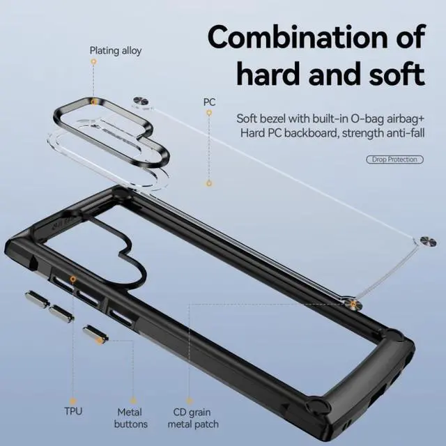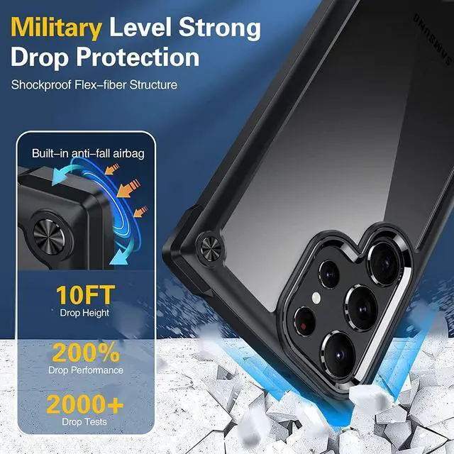 Features: Compatible with Samsung Galaxy S23 Ultra 5G. Extensively drop tested, so you can feel reassured that your device is well protected. Crystal clear case provides a slim fitting stylish design and reinforced corner shock protection against damage, keeping your device looking great at all time. Made from reinforced bonded thermopolyurethane and optical grade polycarbonate materials, which makes it flexible enough to absorb punishment but hard enough to resist potential damage. Designed to be slim, lightweight and strong - so you can be assured that this case will add virtually no extra bulk to your phone and will still fit in your pocket with ease. Raised bezels on the case protects your phone's screen and camera from scratches. independent metal buttons for an easy, conspicuous press. Precisely cutouts to preserve full use of volume buttons, charger, camera, microphone, and all other ports. Supports wireless charging with most Qi-certified devices.