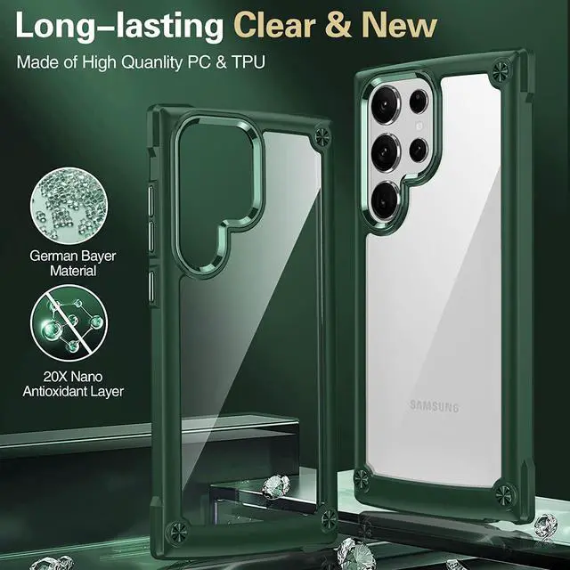 Features: Compatible with Samsung Galaxy S23 Ultra 5G. Extensively drop tested, so you can feel reassured that your device is well protected. Crystal clear case provides a slim fitting stylish design and reinforced corner shock protection against damage, keeping your device looking great at all time. Made from reinforced bonded thermopolyurethane and optical grade polycarbonate materials, which makes it flexible enough to absorb punishment but hard enough to resist potential damage. Designed to be slim, lightweight and strong - so you can be assured that this case will add virtually no extra bulk to your phone and will still fit in your pocket with ease. Raised bezels on the case protects your phone's screen and camera from scratches. independent metal buttons for an easy, conspicuous press. Precisely cutouts to preserve full use of volume buttons, charger, camera, microphone, and all other ports. Supports wireless charging with most Qi-certified devices.