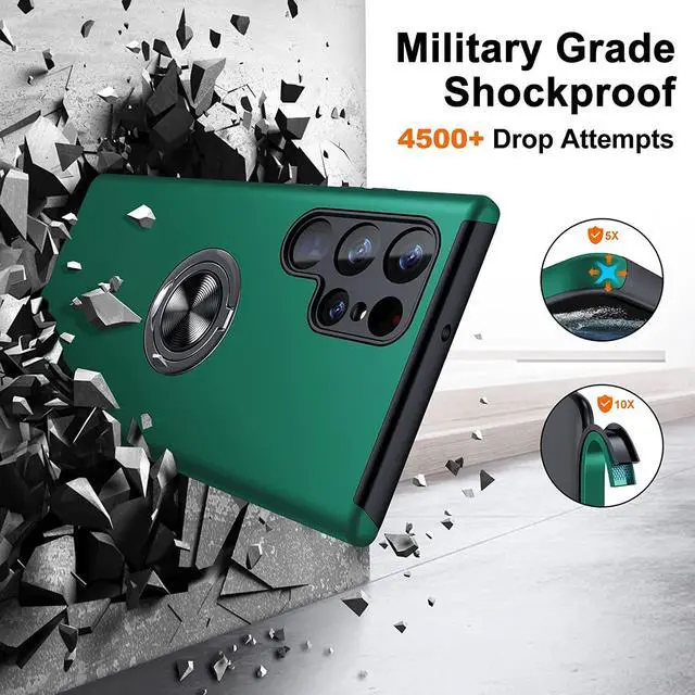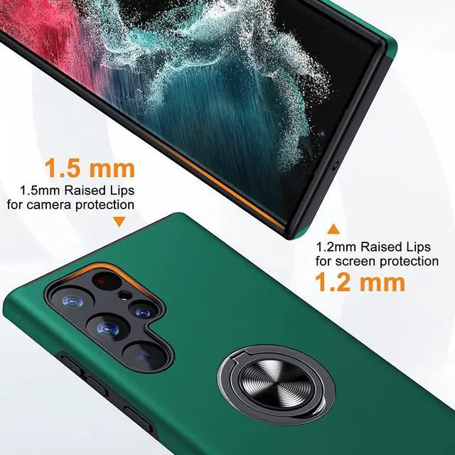 Features: Compatible with Samsung Galaxy S23 Ultra 5G. Extensively drop tested, so you can feel reassured that your device is well protected. Made from reinforced bonded thermopolyurethane and high quality polycarbonate materials, which makes it flexible enough to absorb punishment but hard enough to resist potential damage. 360° rotating ring grip. Horizontal kickstand. Ultra-slim, lightweight and minimal design. Equipped with two-piece design, you can easily pop the case on and off with ease while still feeling ultimately protected. Get maximum safety and easy access to all buttons and ports from raised bezel edges, shock-absorbing corners, and a non-slip bumper grip. Enjoy magnetic mount compatibility, as the ring holder also functions as a built-in metal plate.