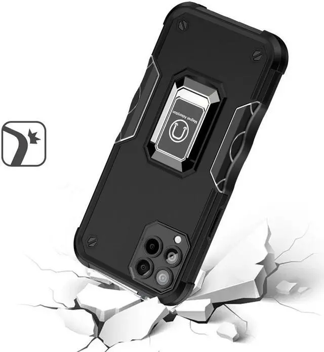 to withstands 4X MIL-STD (810G- 516.6 ), meaning the cases have been dropped at 2 meters with zero damage done to the device. Featuring a robust multi-layered design, the case provides extreme protection for your device. This hard-wearing tough case safe-guards your phone against whatever life can throw at, keeping it secure at all times even in the most extreme of conditions. A soft rubberized TPU inner core tightly grips to your phone while absorbs shock and cushions the phone from drops and impact. Patented hybrid case with ridge polycarbonate hard shell for armor-like protection. Reinforced air cushion corners provide excellent protection where it's most needed. The back of the case has a built-in extremely practical handle, Ring, which can be put on the finger to hold the phone more securely in your hand. It also allows you to attach the phone to a magnetic car holder. Pull the ring out and have a handy viewing stand to comfortably watch your favorite show. Raised front bezel and camera opening prevent scratches to the screen and camera lens. Integrated camera lens bumper protector protects the lens from accidental drops.