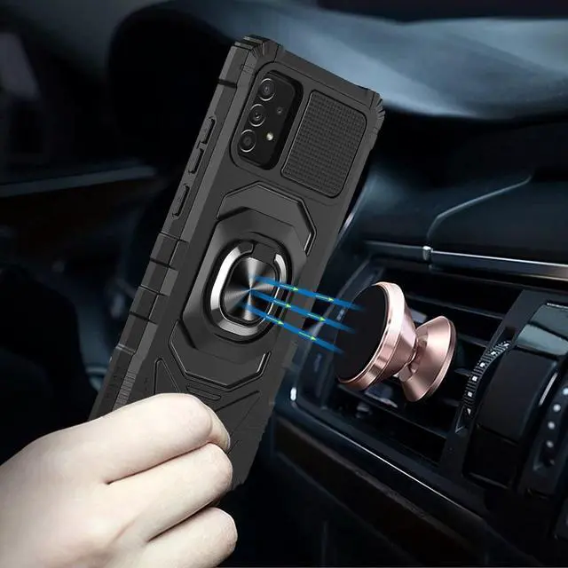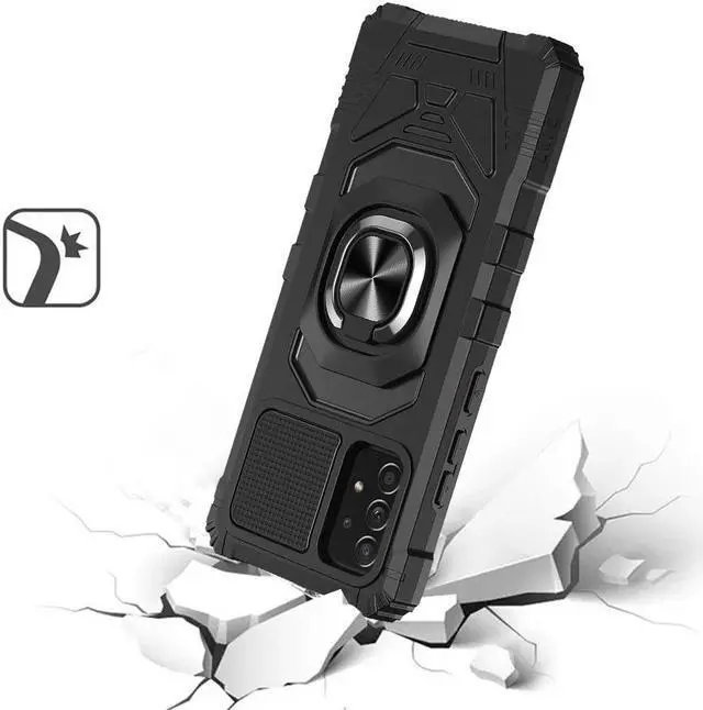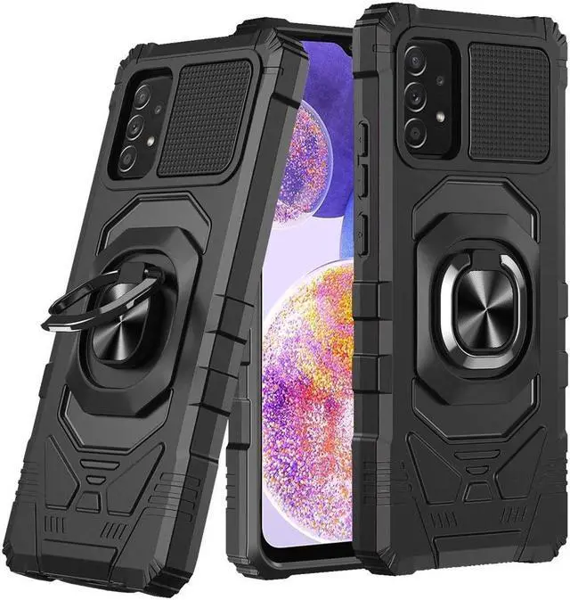 Features: Compatible with Samsung Galaxy A23 5G. Extensively drop tested, so you can feel reassured that your device is well protected. Made from reinforced bonded thermopolyurethane and high quality polycarbonate materials, which makes it flexible enough to absorb punishment but hard enough to resist potential damage. Ring grip for extra drop protection - in more ways than one. The ring can also perform as a handy viewing stand. Just pull the loop out to its full extent and rest your phone at an angle on a flat surface. The loop will prop the phone up at a perfect viewing angle for watching media. Four corners with beveled exterior offering strong resistance to impact and bumps. Reinforced TPU bumper edges provide excellent protection where it's most needed. The selected materials used have a non-slip coating that provides you with extra grip for your phone, which minimizes the chance of dropping your device. Slim fitting design adds no very little bulk and fits perfectly in your pocket. Raised bezels on the case protects your screen and camera from scratches and dirt. Signature lip designed to protect your device and camera lens from flat falls.