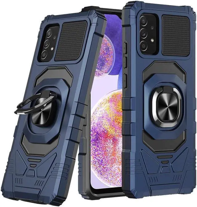 Features: Compatible with Samsung Galaxy A23 5G. Extensively drop tested, so you can feel reassured that your device is well protected. Made from reinforced bonded thermopolyurethane and high quality polycarbonate materials, which makes it flexible enough to absorb punishment but hard enough to resist potential damage. Ring grip for extra drop protection - in more ways than one. The ring can also perform as a handy viewing stand. Just pull the loop out to its full extent and rest your phone at an angle on a flat surface. The loop will prop the phone up at a perfect viewing angle for watching media. Four corners with beveled exterior offering strong resistance to impact and bumps. Reinforced TPU bumper edges provide excellent protection where it's most needed. The selected materials used have a non-slip coating that provides you with extra grip for your phone, which minimizes the chance of dropping your device. Slim fitting design adds no very little bulk and fits perfectly in your pocket. Raised bezels on the case protects your screen and camera from scratches and dirt. Signature lip designed to protect your device and camera lens from flat falls.