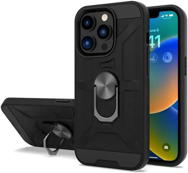 Features: Compatible with Apple iPhone 14 Pro. Made from reinforced bonded thermopolyurethane and high quality polycarbonate materials, which makes it flexible enough to absorb punishment but hard enough to resist potential damage. Finger ring holder for extra protection - in more ways than one. The loop can also perform as a handy viewing stand. Just pull the ring out to its full extent and rest your phone at an angle on a flat surface. The ring will prop the phone up at a perfect viewing angle for watching media. Reinforced TPU bumper edges provide excellent protection where it's most needed. The selected materials used have a non-slip coating that provides you with extra grip for your phone, which minimizes the chance of dropping your device. Slim fitting design adds no very little bulk and fits perfectly in your pocket. Raised bezels on the case protects your screen and camera from scratches. Intuitive button covers for a tactile experience. Equipped with two-piece design, you can easily pop the case on and off with ease while still feeling ultimately protected. Enjoy magnetic mount compatibility, as the ring holder also functions as a built-in metal plate.