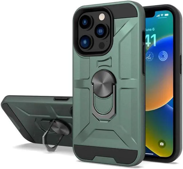 Features: Compatible with Apple iPhone 14 Pro. Made from reinforced bonded thermopolyurethane and high quality polycarbonate materials, which makes it flexible enough to absorb punishment but hard enough to resist potential damage. Finger ring holder for extra protection - in more ways than one. The loop can also perform as a handy viewing stand. Just pull the ring out to its full extent and rest your phone at an angle on a flat surface. The ring will prop the phone up at a perfect viewing angle for watching media. Reinforced TPU bumper edges provide excellent protection where it's most needed. The selected materials used have a non-slip coating that provides you with extra grip for your phone, which minimizes the chance of dropping your device. Slim fitting design adds no very little bulk and fits perfectly in your pocket. Raised bezels on the case protects your screen and camera from scratches. Intuitive button covers for a tactile experience. Equipped with two-piece design, you can easily pop the case on and off with ease while still feeling ultimately protected. Enjoy magnetic mount compatibility, as the ring holder also functions as a built-in metal plate.