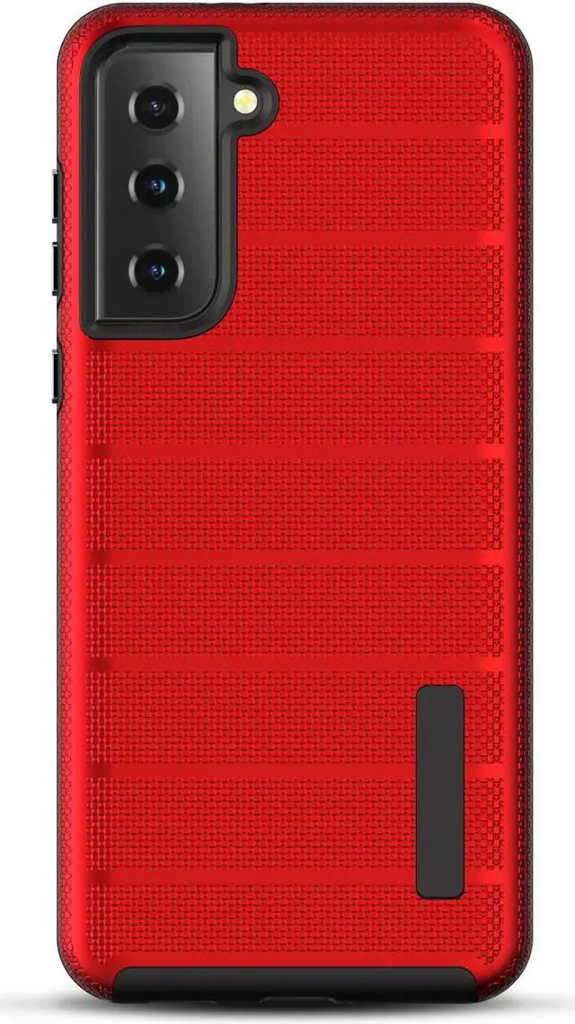 The Haptic Football Textured Anti-Slip Hybrid Armor Case for the Samsung Galaxy S21 Plus 5G is the perfect combination of a TPU shell within a hard polycarbonate backing. It’ s reinforced with cushion technology for intense fortification that absorbs shock from bumps and falls without the bulk. The raised lip protects the screen from flat surfaces without obstructing touchscreen functionality.