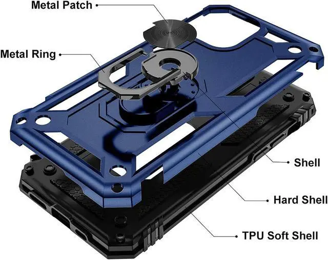 Layer 2: One-piece custom molded polycarbonate shell. Featuring a robust multi-layered design, the Finger Loop Armor provides extreme protection for your smartphone. This hard-wearing tough case safe-guards your phone against whatever life can throw your way, keeping your device secure at all times even in the most extreme of conditions With fluid press buttons included in the design of this case, you can be sure to have a case that will protect your new device perfectly, without interrupting it's every day use. Built-in magnetic plate for using on magnetic car mount (car mount not included). Precise cutouts provide full access to your phone’ s important features, ports and button.