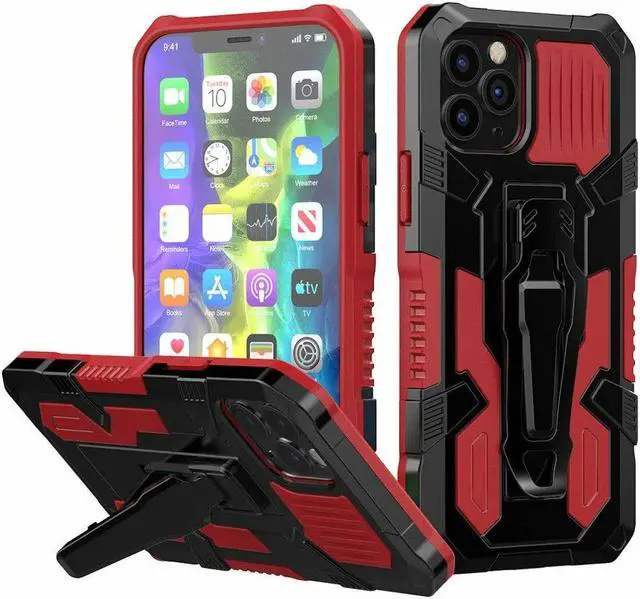 Features: Compatible with Apple iPhone 14 Pro Max. Military Standard Shock Test MIL-STD 810G- 516.6 Protection. The case endured 26 drops (at 48in) on all 6 faces, 12 edges and 8 corners of the device and sustained zero damage to the appearance and internal hardware of the phone itself. Integrated metal belt clip which can liberate your hands. With it, you can clip the phone on the belt / the edge of the trouser pocket / or other places. Located at the back of the case is a super-convenient flip-out kickstand. Folding completely flat when not in use, the kickstand can be called upon at will, allowing you to effortlessly watch media at any time and in landscape mode. Featuring a robust multi-layered design, the case provides extreme protection for your smartphone. Extra cushioning points to all four corners to secure your device against all drops and bumps. Made from a special strong and lightweight durable material, providing you with long lasting protection for your smartphone without making it cumbersome. Raised front bezel and camera opening prevent scratches to the screen and camera lens.