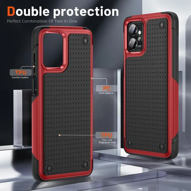Features: Compatible with Motorola Moto G Power 5G 2023. Extensively drop tested, so you can feel reassured that your device is well protected. Featuring a robust multi-layered design, the TUFF Dot Case provides extreme protection for your device. This hard-wearing tough case safe-guards your phone against whatever life can throw at, keeping it secure at all times even in the most extreme of conditions. Reinforced air cushion corners provide excellent protection where it's most needed. A soft rubberized TPU inner core tightly grips to your phone while absorbs shock and cushions the phone from drops and impact. Patented hybrid case with ridge polycarbonate hard shell for armor-like protection. Raised front bezel and camera opening prevent scratches to the screen and camera lens. Etched grips at the sides aids handling. Textured rubbery interior for impact resistant protection. Intuitive button covers for a tactile experience. Precise cutouts provide full access to your phone’ s important features, ports and buttons.