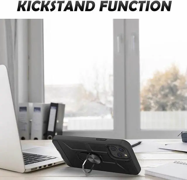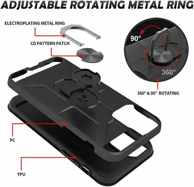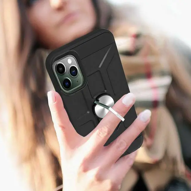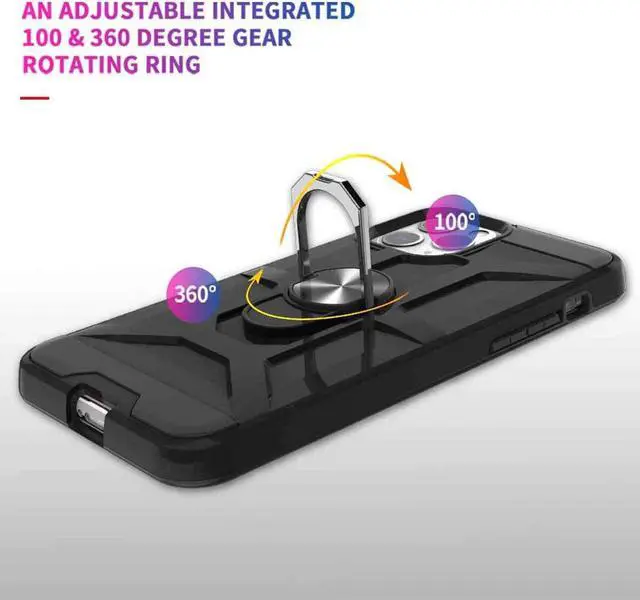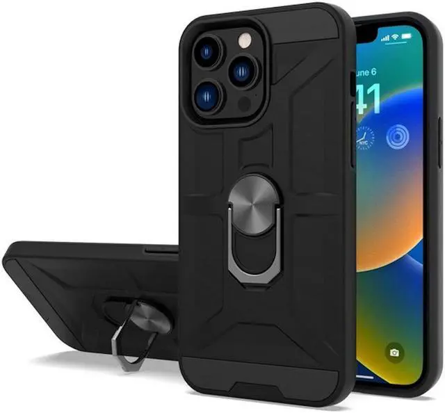 Features: Compatible with Apple iPhone 14 Pro Max. Made from reinforced bonded thermopolyurethane and high quality polycarbonate materials, which makes it flexible enough to absorb punishment but hard enough to resist potential damage. Finger ring holder for extra protection - in more ways than one. The loop can also perform as a handy viewing stand. Just pull the ring out to its full extent and rest your phone at an angle on a flat surface. The ring will prop the phone up at a perfect viewing angle for watching media. Reinforced TPU bumper edges provide excellent protection where it's most needed. The selected materials used have a non-slip coating that provides you with extra grip for your phone, which minimizes the chance of dropping your device. Slim fitting design adds no very little bulk and fits perfectly in your pocket. Raised bezels on the case protects your screen and camera from scratches. Intuitive button covers for a tactile experience. Equipped with two-piece design, you can easily pop the case on and off with ease while still feeling ultimately protected. Enjoy magnetic mount compatibility, as the ring holder also functions as a built-in metal plate.