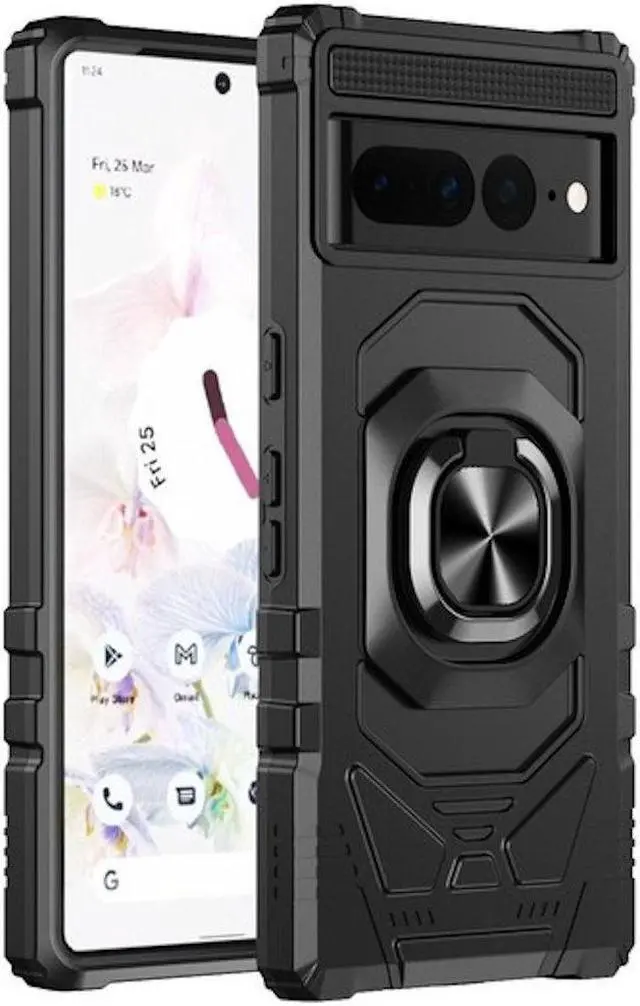 Features: Compatible with Google Pixel 7 Pro. Extensively drop tested, so you can feel reassured that your device is well protected. Made from reinforced bonded thermopolyurethane and high quality polycarbonate materials, which makes it flexible enough to absorb punishment but hard enough to resist potential damage. Ring grip for extra drop protection - in more ways than one. The ring can also perform as a handy viewing stand. Just pull the loop out to its full extent and rest your phone at an angle on a flat surface. The loop will prop the phone up at a perfect viewing angle for watching media. Four corners with beveled exterior offering strong resistance to impact and bumps. Reinforced TPU bumper edges provide excellent protection where it's most needed. The selected materials used have a non-slip coating that provides you with extra grip for your phone, which minimizes the chance of dropping your device. Slim fitting design adds no very little bulk and fits perfectly in your pocket. Raised bezels on the case protects your screen and camera from scratches and dirt. Signature lip designed to protect your device and camera lens from flat falls.