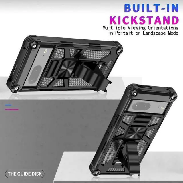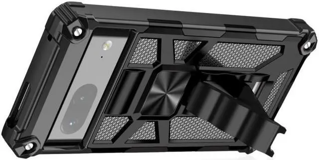 Features: Compatible with Google Pixel 7. Extensively drop tested, so you can feel reassured that your device is well protected. Featuring a robust military design with premium rugged protection. Composite layers of shock-absorbing thermopolyurethane and ultra-resistant reinforced polycarbonate take all the punishment your daily travel and use can throw at your phone, including drop protection. Reinforced air cushion corners are designed to deflect shock force away from your phone and the corners are the most vulnerable areas of any phone or case. Located at the back of the case is a super-convenient flip-out kickstand. Folding completely flat when not in use, the kickstand can be called upon at will, allowing you to effortlessly watch media at any time and in any place. The sleek military styling and ruggedized construction of the case combines to create a case that perfectly compliments the phone's stunning design. Raised bezels on the case protects your screen and camera from scratches. Intuitive button covers for a tactile experience. Enjoy magnetic mount compatibility, as the ring holder also functions as a built-in metal plate. Precise cutouts provide full access to your phone’ s important features, ports and buttons.