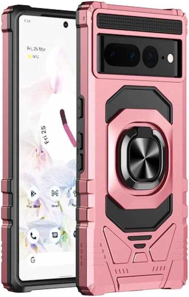 Features: Compatible with Google Pixel 7 Pro. Extensively drop tested, so you can feel reassured that your device is well protected. Made from reinforced bonded thermopolyurethane and high quality polycarbonate materials, which makes it flexible enough to absorb punishment but hard enough to resist potential damage. Ring grip for extra drop protection - in more ways than one. The ring can also perform as a handy viewing stand. Just pull the loop out to its full extent and rest your phone at an angle on a flat surface. The loop will prop the phone up at a perfect viewing angle for watching media. Four corners with beveled exterior offering strong resistance to impact and bumps. Reinforced TPU bumper edges provide excellent protection where it's most needed. The selected materials used have a non-slip coating that provides you with extra grip for your phone, which minimizes the chance of dropping your device. Slim fitting design adds no very little bulk and fits perfectly in your pocket. Raised bezels on the case protects your screen and camera from scratches and dirt. Signature lip designed to protect your device and camera lens from flat falls.
