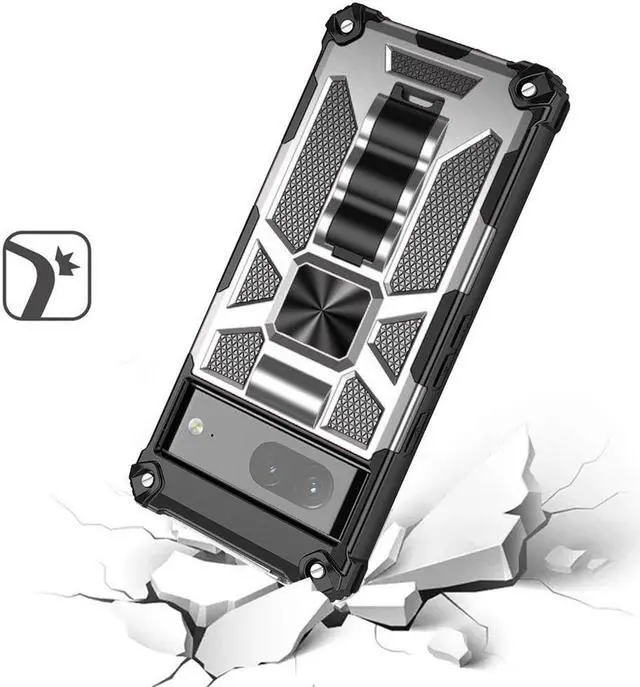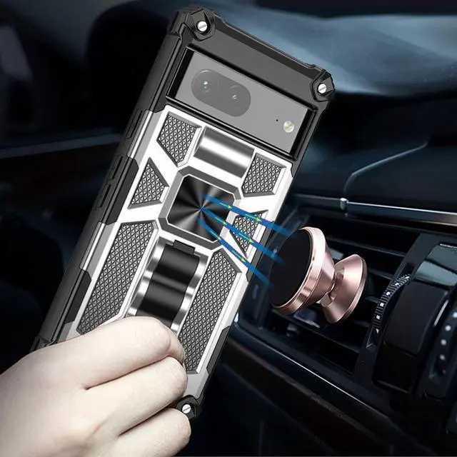 Features: Compatible with Google Pixel 7. Extensively drop tested, so you can feel reassured that your device is well protected. Featuring a robust military design with premium rugged protection. Composite layers of shock-absorbing thermopolyurethane and ultra-resistant reinforced polycarbonate take all the punishment your daily travel and use can throw at your phone, including drop protection. Reinforced air cushion corners are designed to deflect shock force away from your phone and the corners are the most vulnerable areas of any phone or case. Located at the back of the case is a super-convenient flip-out kickstand. Folding completely flat when not in use, the kickstand can be called upon at will, allowing you to effortlessly watch media at any time and in any place. The sleek military styling and ruggedized construction of the case combines to create a case that perfectly compliments the phone's stunning design. Raised bezels on the case protects your screen and camera from scratches. Intuitive button covers for a tactile experience. Enjoy magnetic mount compatibility, as the ring holder also functions as a built-in metal plate. Precise cutouts provide full access to your phone’ s important features, ports and buttons.