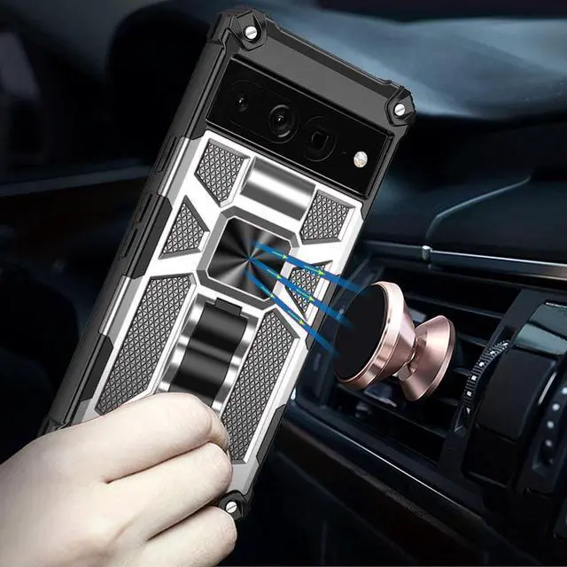 Features: Compatible with Google Pixel 7 Pro. Extensively drop tested, so you can feel reassured that your device is well protected. Featuring a robust military design with premium rugged protection. Composite layers of shock-absorbing thermopolyurethane and ultra-resistant reinforced polycarbonate take all the punishment your daily travel and use can throw at your phone, including drop protection. Reinforced air cushion corners are designed to deflect shock force away from your phone and the corners are the most vulnerable areas of any phone or case. Located at the back of the case is a super-convenient flip-out kickstand. Folding completely flat when not in use, the kickstand can be called upon at will, allowing you to effortlessly watch media at any time and in any place. The sleek military styling and ruggedized construction of the case combines to create a case that perfectly compliments the phone's stunning design. Raised bezels on the case protects your screen and camera from scratches. Intuitive button covers for a tactile experience. Enjoy magnetic mount compatibility, as the ring holder also functions as a built-in metal plate. Precise cutouts provide full access to your phone’ s important features, ports and buttons.