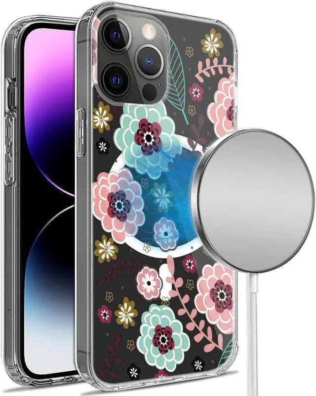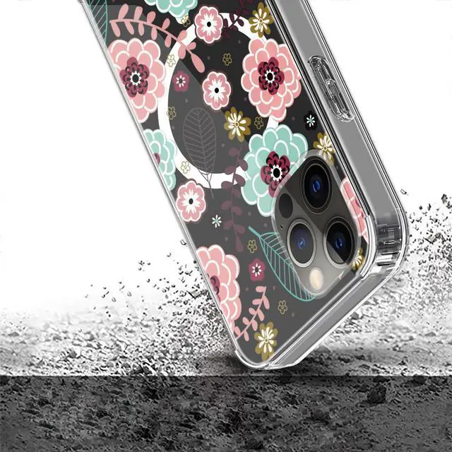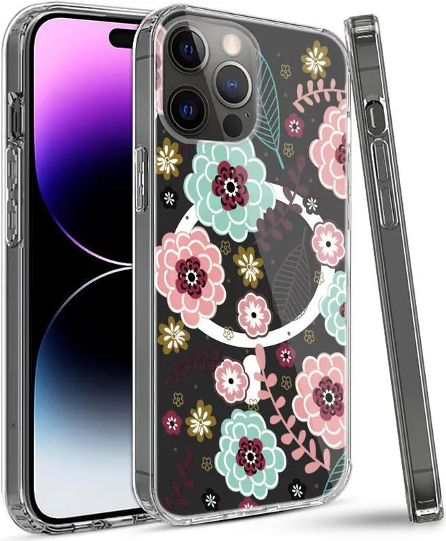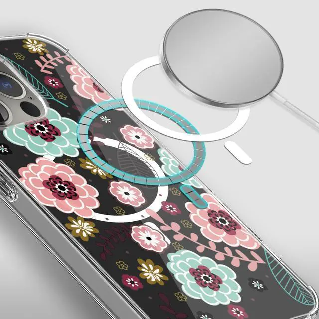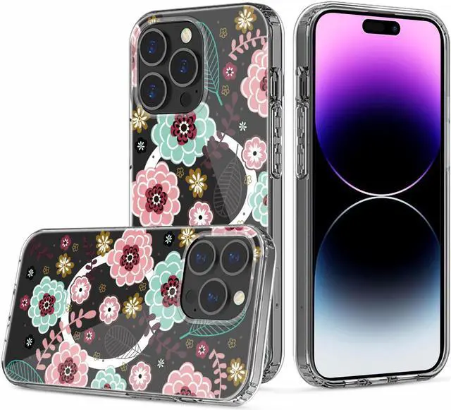 Features: Compatible with Apple iPhone 14 Pro. Designed to interact with Apple’ s MagSafe ecosystem. Built-in magnetic ring for strengthened MagSafe connections. Compatible with Apple MagSafe chargers and accessories so you can power up without removing the case. Inspirational floral illustrations. The minimalist design of this case gives you everything you need, from a slim profile to its incredible drop protection - plus it’ s a total beauty. One-piece platform design with soft rubber and hard polycarbonate. Reinforced corners provide excellent drop protection. Soft rubber bumper for enhanced grip and scratch protection. Transparent hard-shell polycarbonate backing lets the color of your phone shine through. Antimicrobial case protection. Raised camera cut-out protects the lens from scratches when placing your phone on flat surface. Access to all features, functions and connections.