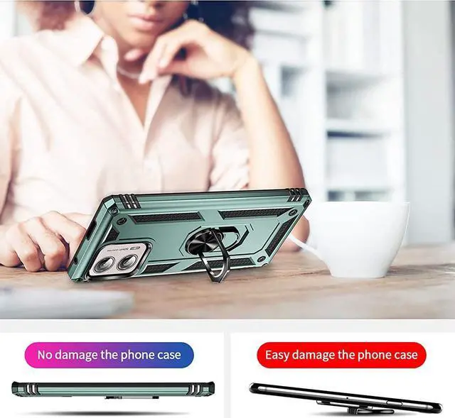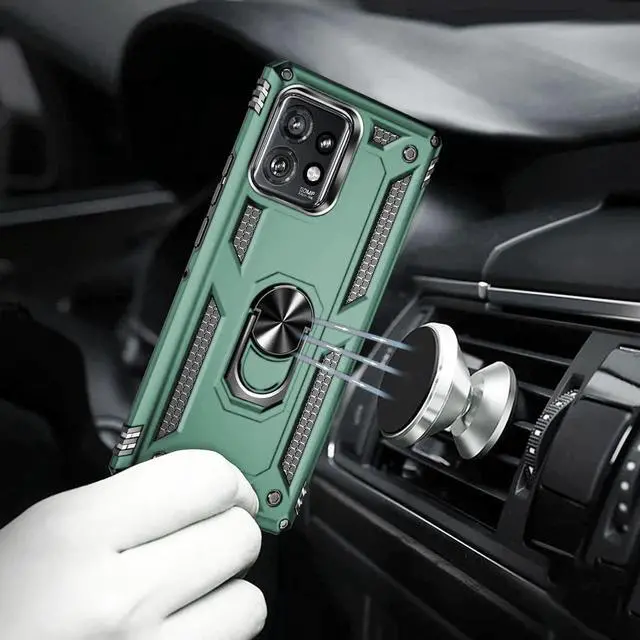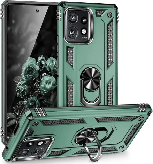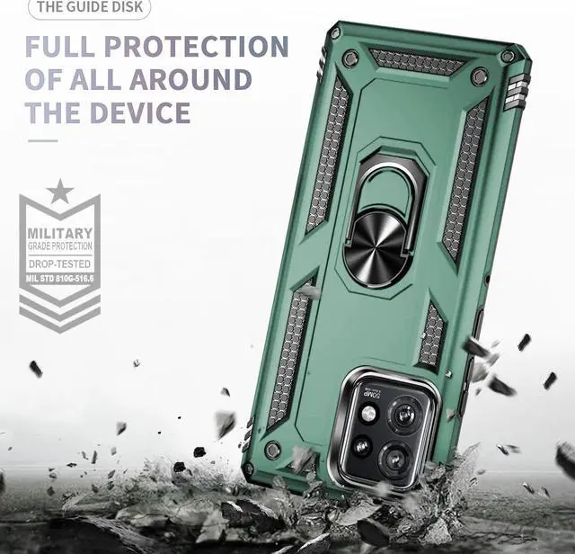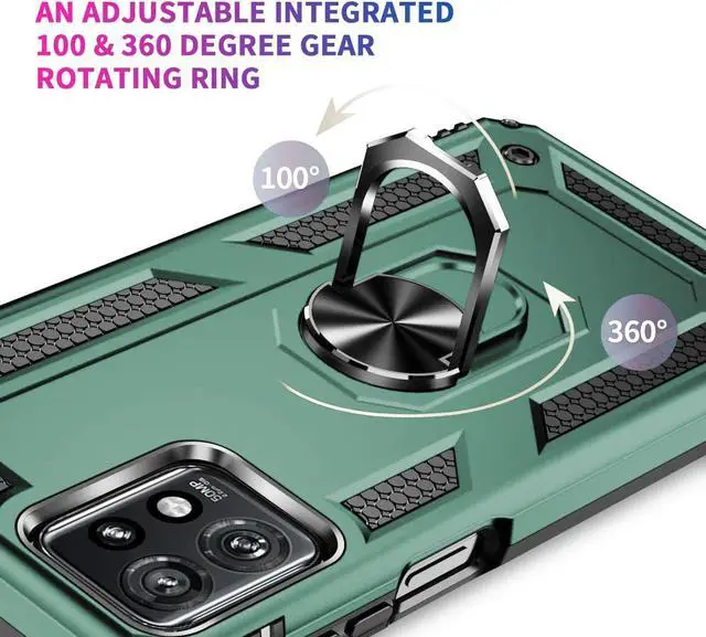 Features: Compatible with Motorola Edge+ 2023. Military Standard Shock Test MIL-STD 810G- 516.6 Protection. The case endured 26 drops (at 48in) on all 6 faces, 12 edges and 8 corners of the device and sustained zero damage to the appearance and internal hardware of the phone itself. Made from a special strong and lightweight durable material, providing you with long lasting protection for your smartphone without making it cumbersome. The Ring Armor gets its name from an ingenious finger loop system on the rear of the case. This loop folds flat and out of view if you do not want or need it. But if you do, simply pull the loop out, slip your finger through and you have an extra secure grip on your phone. Another benefit of the ring holder is that the loop can also perform as a handy viewing stand. Just pull the loop out to its full extent and rest your phone at an angle on a flat surface. Unique mix material hybrid design.
