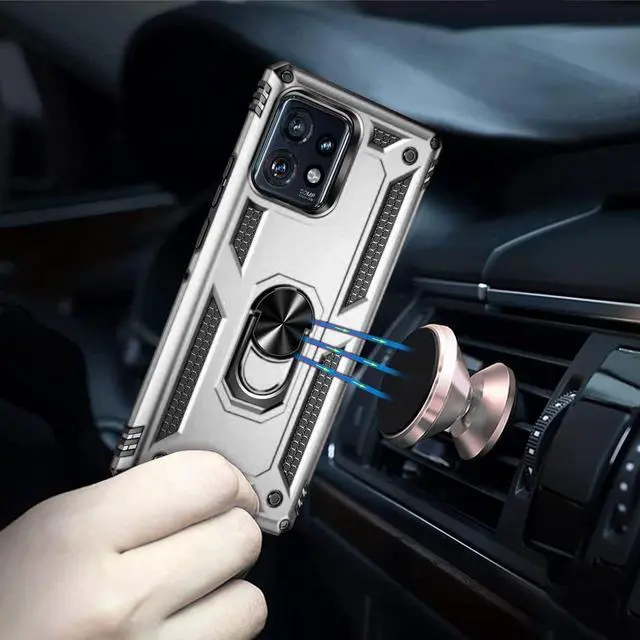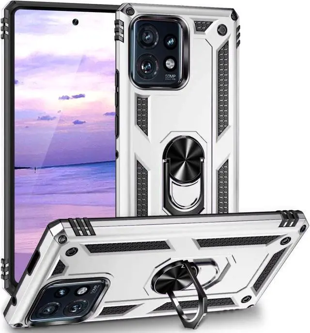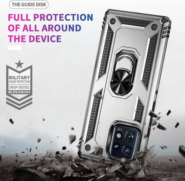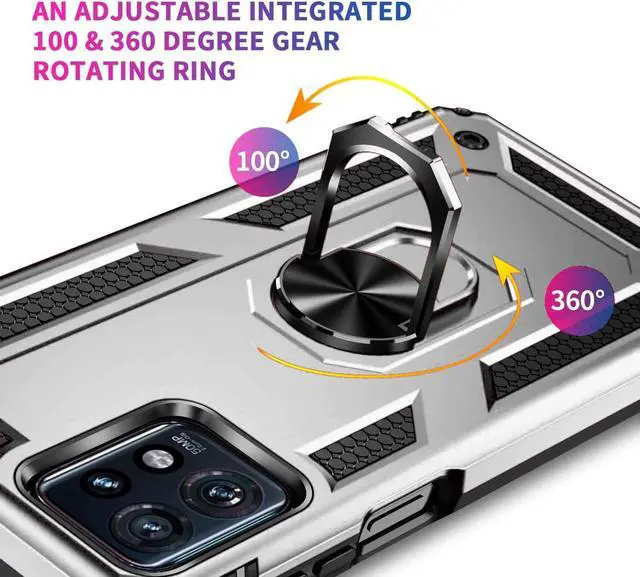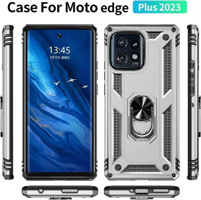 Features: Compatible with Motorola Edge+ 2023. Military Standard Shock Test MIL-STD 810G- 516.6 Protection. The case endured 26 drops (at 48in) on all 6 faces, 12 edges and 8 corners of the device and sustained zero damage to the appearance and internal hardware of the phone itself. Made from a special strong and lightweight durable material, providing you with long lasting protection for your smartphone without making it cumbersome. The Ring Armor gets its name from an ingenious finger loop system on the rear of the case. This loop folds flat and out of view if you do not want or need it. But if you do, simply pull the loop out, slip your finger through and you have an extra secure grip on your phone. Another benefit of the ring holder is that the loop can also perform as a handy viewing stand. Just pull the loop out to its full extent and rest your phone at an angle on a flat surface. Unique mix material hybrid design.