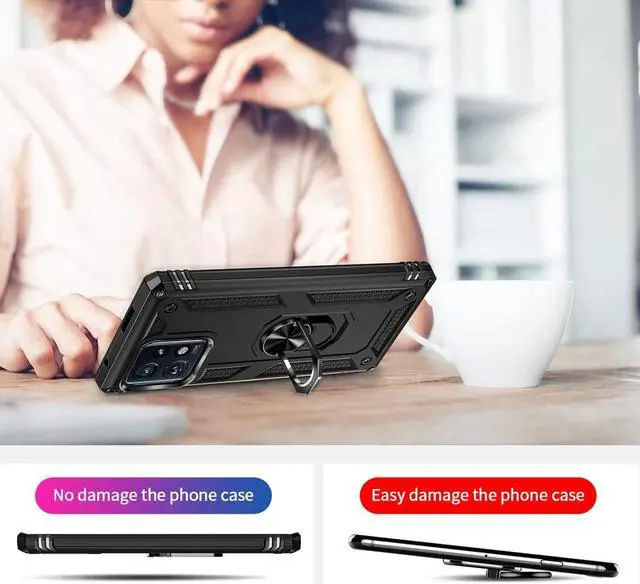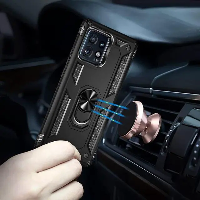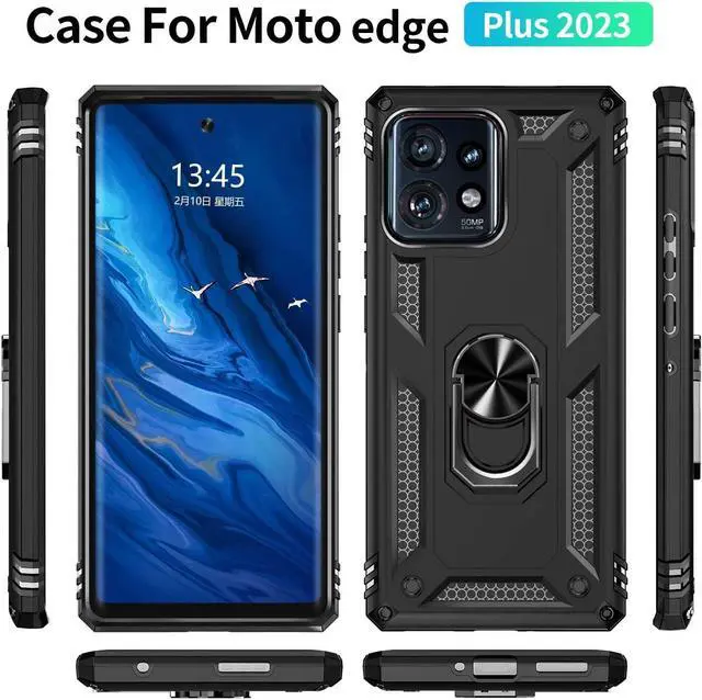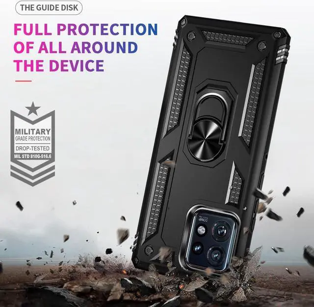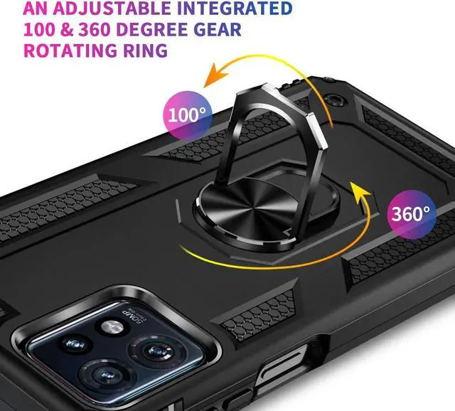 Features: Compatible with Motorola Edge+ 2023. Military Standard Shock Test MIL-STD 810G- 516.6 Protection. The case endured 26 drops (at 48in) on all 6 faces, 12 edges and 8 corners of the device and sustained zero damage to the appearance and internal hardware of the phone itself. Made from a special strong and lightweight durable material, providing you with long lasting protection for your smartphone without making it cumbersome. The Ring Armor gets its name from an ingenious finger loop system on the rear of the case. This loop folds flat and out of view if you do not want or need it. But if you do, simply pull the loop out, slip your finger through and you have an extra secure grip on your phone. Another benefit of the ring holder is that the loop can also perform as a handy viewing stand. Just pull the loop out to its full extent and rest your phone at an angle on a flat surface. Unique mix material hybrid design.