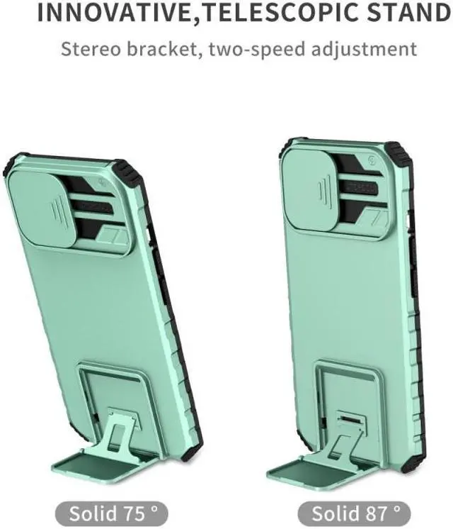 Features: Compatible with Apple iPhone 14 Pro Max. Extensively drop tested, so you can feel reassured that your device is well protected. Two layered case protects from bumps, scrapes and drops. Made from robust and hard-wearing materials for long-lasting protection. Privacy cover slides in front of camera when not in use. Your phone's camera can be hacked - get protected. Portable flip-out stand that pulls out to give the perfect viewing angle for videos and pictures. Non-slip coating with reinforced corners provide excellent protection where it's most needed. Etched grips at the sides aids handling. Raised bezels lift screen and camera off flat surfaces. Intuitive button covers for a tactile experience. Cut-outs for the main ports and features of the phone.