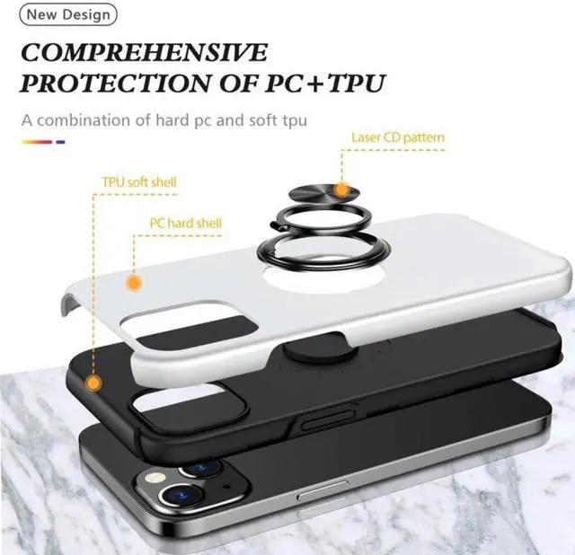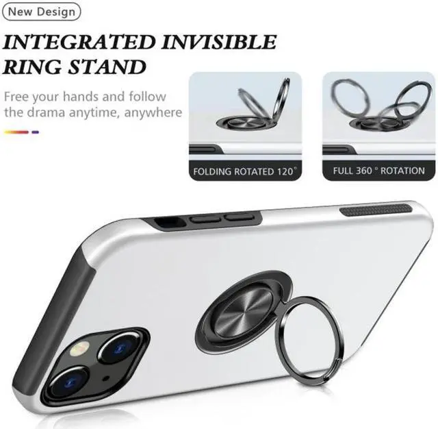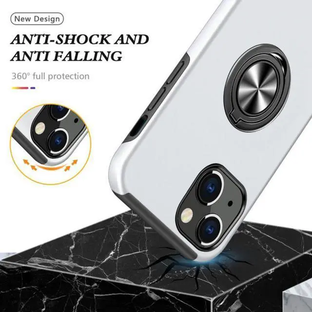 Features: Compatible with Apple iPhone 14 Plus. Made from reinforced bonded thermopolyurethane and high quality polycarbonate materials, which makes it flexible enough to absorb punishment but hard enough to resist potential damage. 360° rotating ring grip. Horizontal kickstand. Ultra-slim, lightweight and minimal design. Equipped with two-piece design, you can easily pop the case on and off with ease while still feeling ultimately protected. Get maximum safety and easy access to all buttons and ports from raised bezel edges, shock-absorbing corners, and a non-slip bumper grip. Enjoy magnetic mount compatibility, as the ring holder also functions as a built-in metal plate.