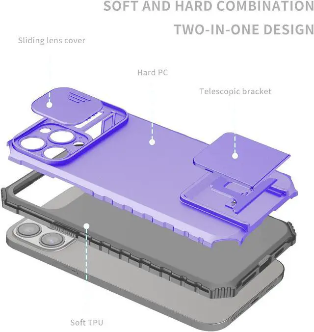 Features: Compatible with Apple iPhone 14 Pro Max. Extensively drop tested, so you can feel reassured that your device is well protected. Two layered case protects from bumps, scrapes and drops. Made from robust and hard-wearing materials for long-lasting protection. Privacy cover slides in front of camera when not in use. Your phone's camera can be hacked - get protected. Portable flip-out stand that pulls out to give the perfect viewing angle for videos and pictures. Non-slip coating with reinforced corners provide excellent protection where it's most needed. Etched grips at the sides aids handling. Raised bezels lift screen and camera off flat surfaces. Intuitive button covers for a tactile experience. Cut-outs for the main ports and features of the phone.