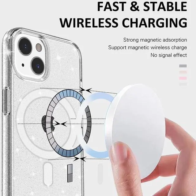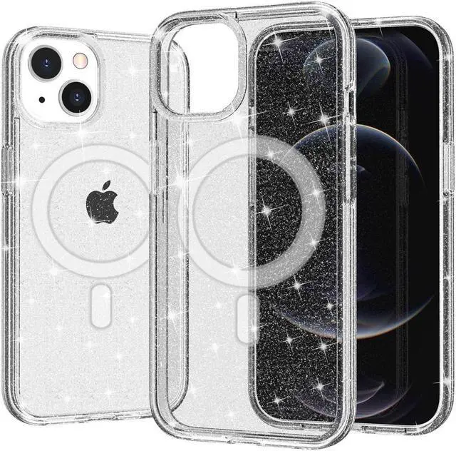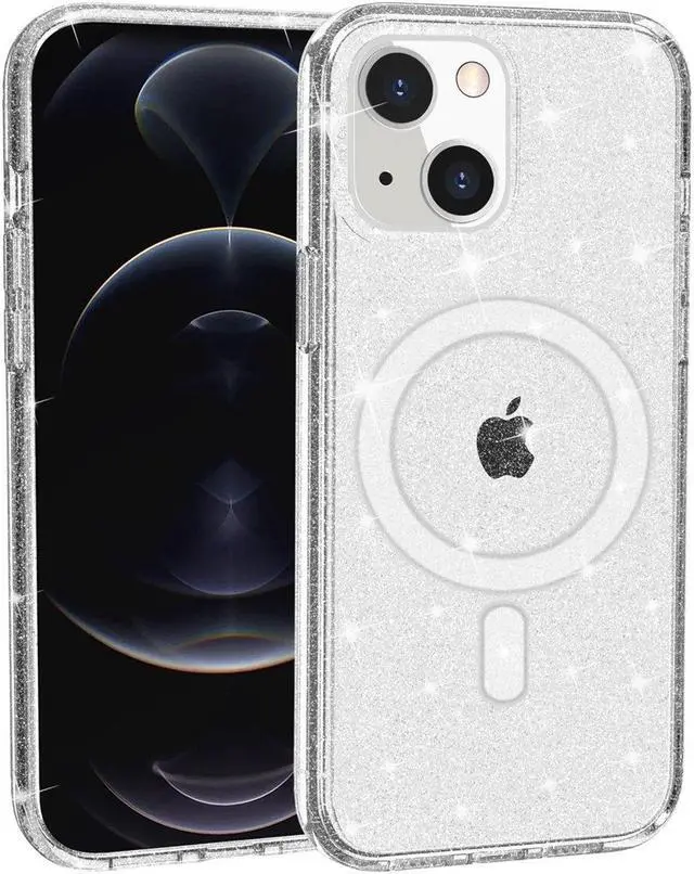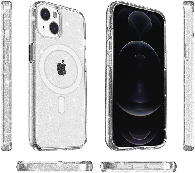 Features: Compatible with Apple iPhone 14. Designed to interact with Apple’ s MagSafe ecosystem. Built-in magnetic ring for strengthened MagSafe connections. Compatible with Apple MagSafe chargers and accessories so you can power up without removing the case. Decked out with flecks of glitter for extra sparkle. Single-piece, soft rubber and hard polycarbonate infused case. Slim and grip-friendly for everyday use. Soft rubber bumper for enhanced grip and scratch protection. 1.2 mm edge lip to protect your screen and camera lens from directly contacting surfaces. Anti-yellow material for longer-lasting clarity. Easy to slip on your device, yet stays on securely. Tactile buttons with absolute responsiveness. Access to all controls and ports.
