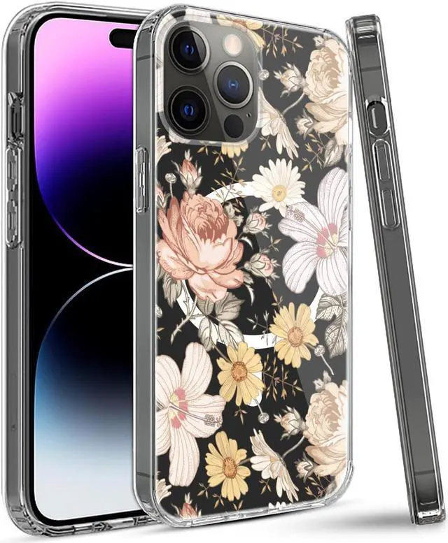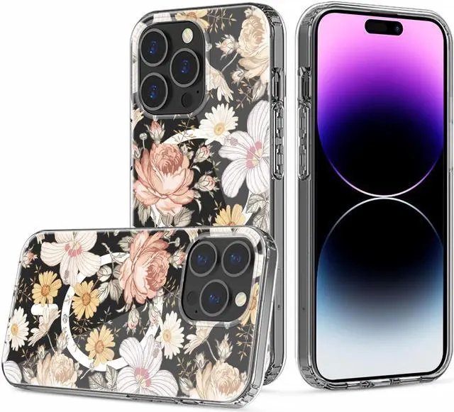 Features: Compatible with Apple iPhone 14 Pro. Designed to interact with Apple’ s MagSafe ecosystem. Built-in magnetic ring for strengthened MagSafe connections. Compatible with Apple MagSafe chargers and accessories so you can power up without removing the case. Inspirational floral illustrations. The minimalist design of this case gives you everything you need, from a slim profile to its incredible drop protection - plus it’ s a total beauty. One-piece platform design with soft rubber and hard polycarbonate. Reinforced corners provide excellent drop protection. Soft rubber bumper for enhanced grip and scratch protection. Transparent hard-shell polycarbonate backing lets the color of your phone shine through. Antimicrobial case protection. Raised camera cut-out protects the lens from scratches when placing your phone on flat surface. Access to all features, functions and connections.