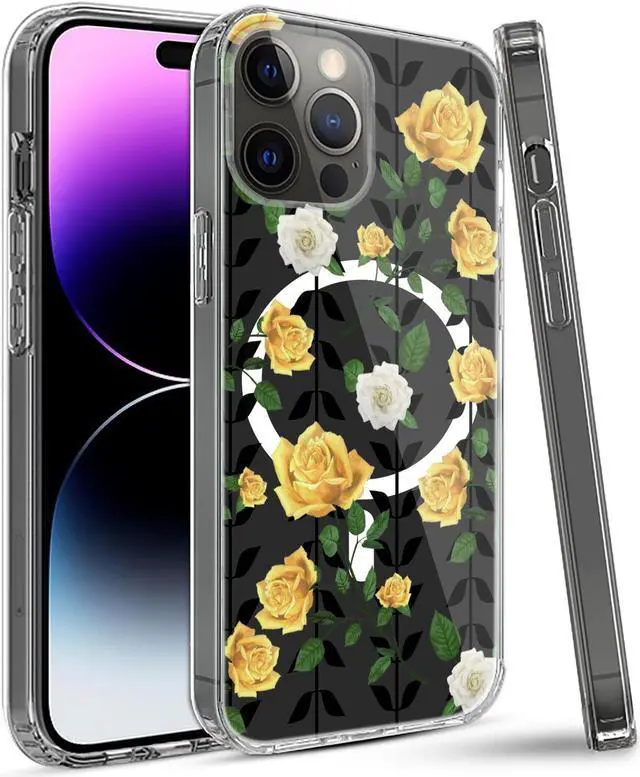 Features: Compatible with Apple iPhone 14 Pro. Designed to interact with Apple’ s MagSafe ecosystem. Built-in magnetic ring for strengthened MagSafe connections. Compatible with Apple MagSafe chargers and accessories so you can power up without removing the case. Inspirational floral illustrations. The minimalist design of this case gives you everything you need, from a slim profile to its incredible drop protection - plus it’ s a total beauty. One-piece platform design with soft rubber and hard polycarbonate. Reinforced corners provide excellent drop protection. Soft rubber bumper for enhanced grip and scratch protection. Transparent hard-shell polycarbonate backing lets the color of your phone shine through. Antimicrobial case protection. Raised camera cut-out protects the lens from scratches when placing your phone on flat surface. Access to all features, functions and connections.