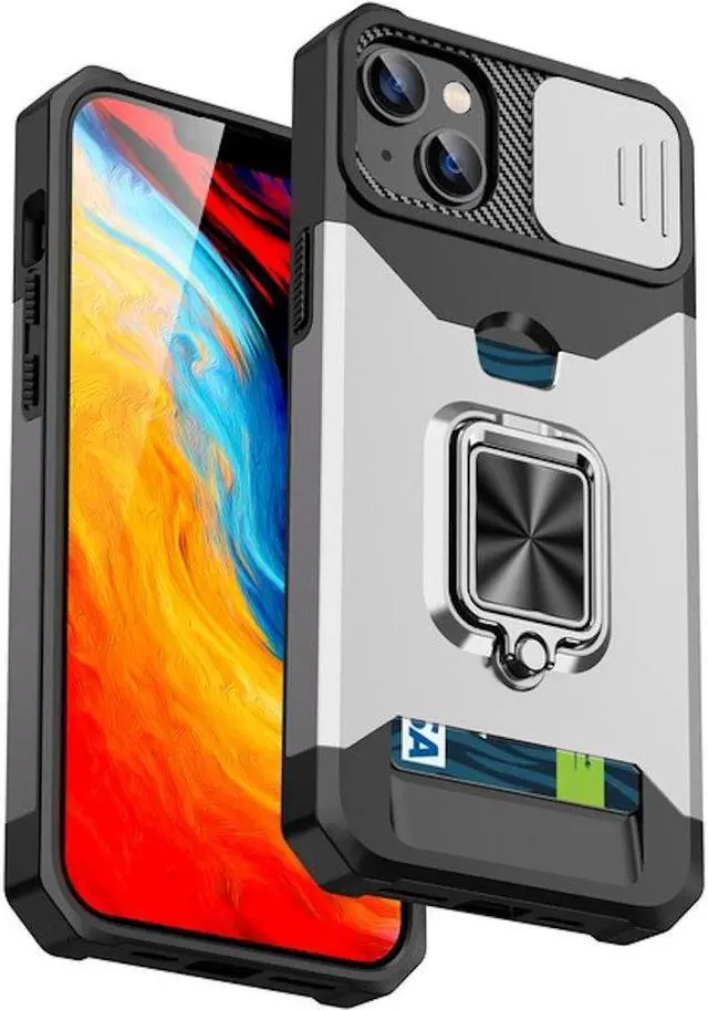 Made for the Apple iPhone 14, the Military Grade All-In-One Ring Stand Card Case provides fantastic all-around protection and a finger loop to keep your phone in your hand, whether from accidental drops or attempted theft. Also featuring storage slot for your credit cards, ID and cash.