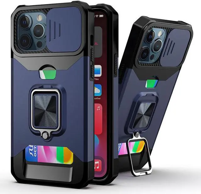 Made for the Apple iPhone 14 Pro Max, the Military Grade All-In-One Ring Stand Card Case provides fantastic all-around protection and a finger loop to keep your phone in your hand, whether from accidental drops or attempted theft. Also featuring storage slot for your credit cards, ID and cash.