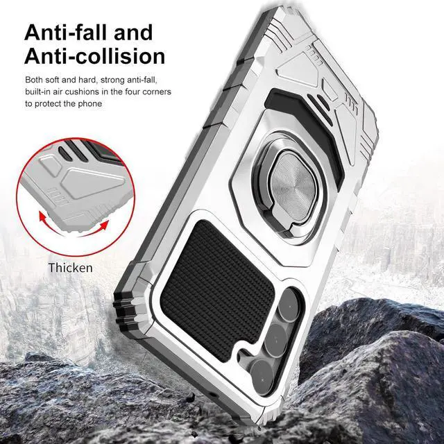 Raised bezels on the case protects your screen and camera from scratches and dirt. Signature lip designed to protect your device and camera lens from flat falls. Intuitive button covers for a tactile experience. Enjoy magnetic mount compatibility, as the ring holder also functions as a built-in metal plate. Cut-outs for all the features and ports so you'll never need to take the case off.
