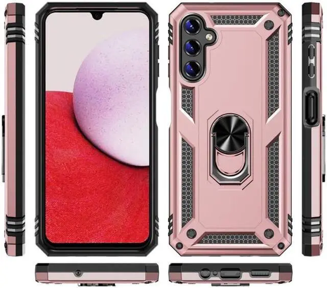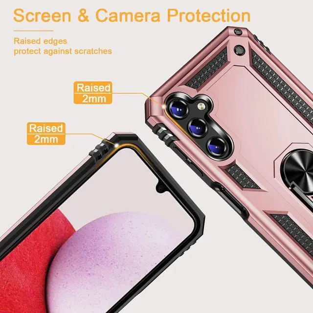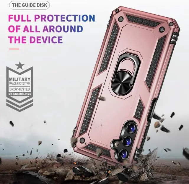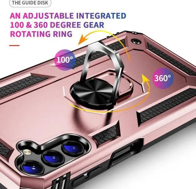 Features: Compatible with Samsung Galaxy A15 5G. Military Standard Shock Test MIL-STD 810G- 516.6 Protection. The case endured 26 drops (at 48in) on all 6 faces, 12 edges and 8 corners of the device and sustained zero damage to the appearance and internal hardware of the phone itself. Made from a special strong and lightweight durable material, providing you with long lasting protection for your smartphone without making it cumbersome. Ring holder for extra drop protection - in more ways than one. The built-it ring features a 180 & 360 degree rotating design to ensure a comfortable grip at any angle. Flip the ring out and it doubles as a kickstand to take your binge-watching experience to the next level. Unique mix material hybrid design.