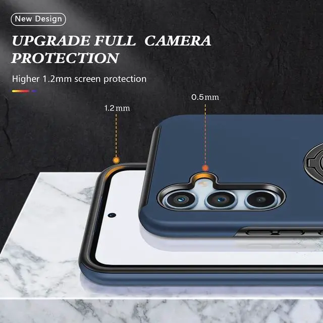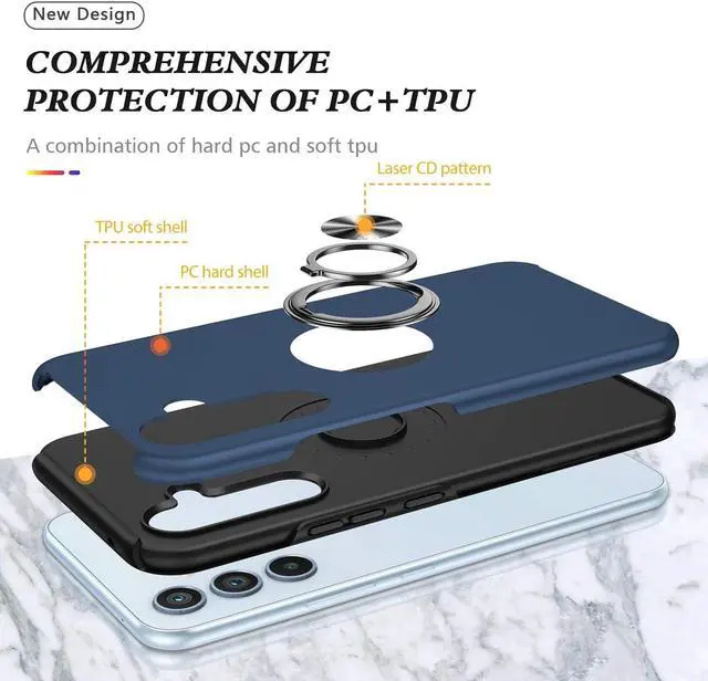 Features: Compatible with Samsung Galaxy A15 5G. Extensively drop tested, so you can feel reassured that your device is well protected. Made from reinforced bonded thermopolyurethane and high quality polycarbonate materials, which makes it flexible enough to absorb punishment but hard enough to resist potential damage. 360° rotating ring grip. Horizontal kickstand. Ultra-slim, lightweight and minimal design. Equipped with two-piece design, you can easily pop the case on and off with ease while still feeling ultimately protected. Get maximum safety and easy access to all buttons and ports from raised bezel edges, shock-absorbing corners, and a non-slip bumper grip. Enjoy magnetic mount compatibility, as the ring holder also functions as a built-in metal plate.