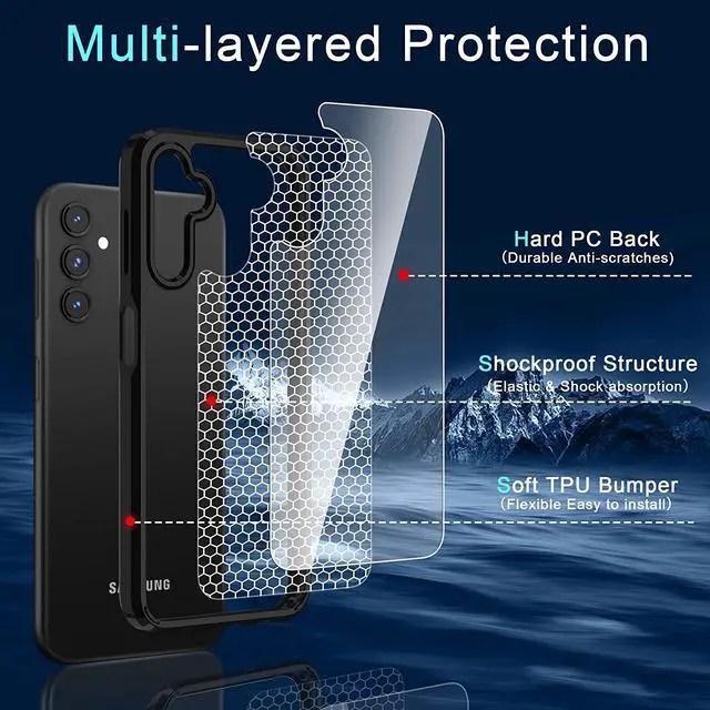 Features: Compatible with Samsung Galaxy A15 5G. Made from optical grade reinforced bonded thermopolyurethane and high quality polycarbonate materials, which makes it flexible enough to absorb punishment but hard enough to resist potential damage. Reinforced corners provide excellent protection where it's most needed. The selected materials used have a non-slip coating that provides you with extra grip for your phone, which minimizes the chance of dropping your device. Slim fitting design adds no very little bulk and fits perfectly in your pocket. Raised bezels on the case protects your screen and camera from scratches and dirt. Embossed buttons for an easy, conspicuous press. Equipped with one-piece platform design, you can easily pop the case on and off with ease while still feeling ultimately protected. Cut-outs for all the features and ports so you'll never need to take the case off.