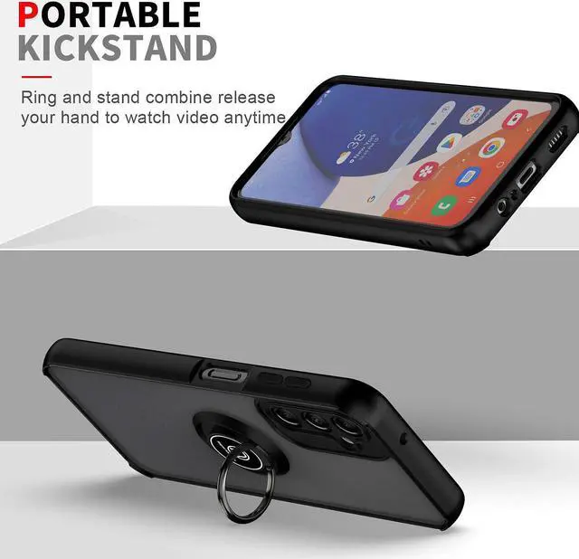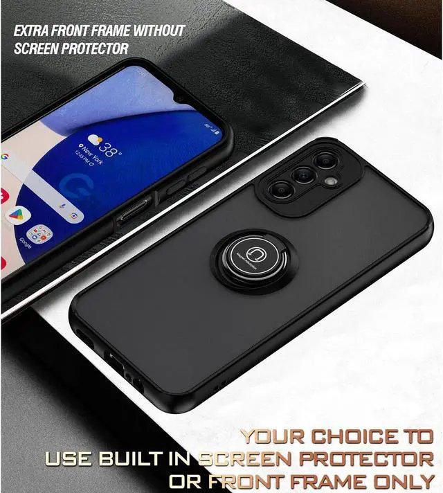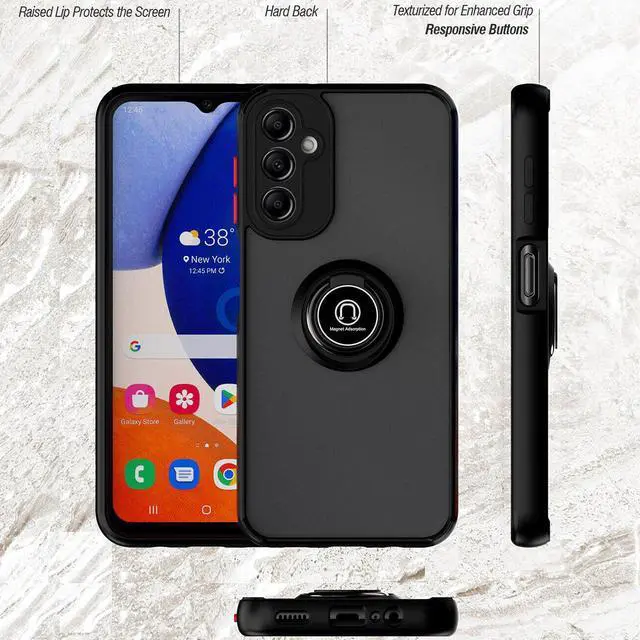 Features: Compatible with Samsung Galaxy A15 5G. Stylish, minimalist protection for your smartphone. Premium dual-material construction with polycarbonate backing and TPU perimeter creates a sleek profile without sacrificing protection. An adjustable integrated 180 and 360 degree gear rotating ring finger holder prevents your phone from accidental drops and slips. Lightweight frosted matte transparent polycarbonate backing with smooth silky surface protects against scratches and dings. Impact-absorbing TPU perimeter guards the device against bumps and drops. This case adds virtually no bulk to your device, so you can carry your phone in your pocket and use it as you normally would without any significant change. This case is effortlessly easy to install and looks great on your phone. Front bumpers raised slightly above your screen act to protect your screen when placed face down or dropped. Raised camera cut-out protects the lens from scratches when placing your phone on flat surface. Enjoy magnetic mount compatibility, as the ring holder also functions as a built-in metal plate. Precisely cutouts to preserve full use of volume buttons, charger, camera, microphone, and all other ports.