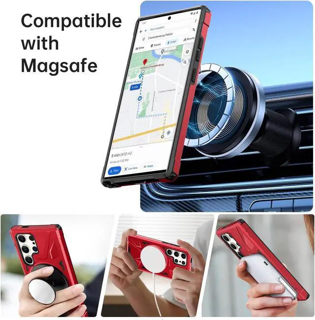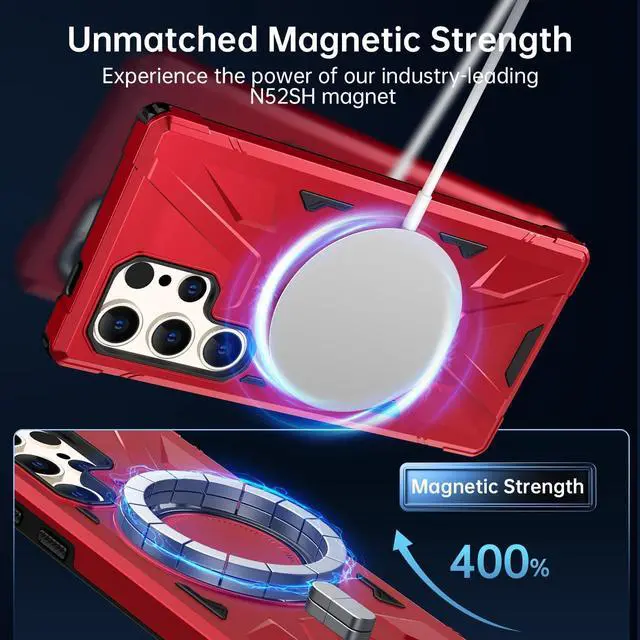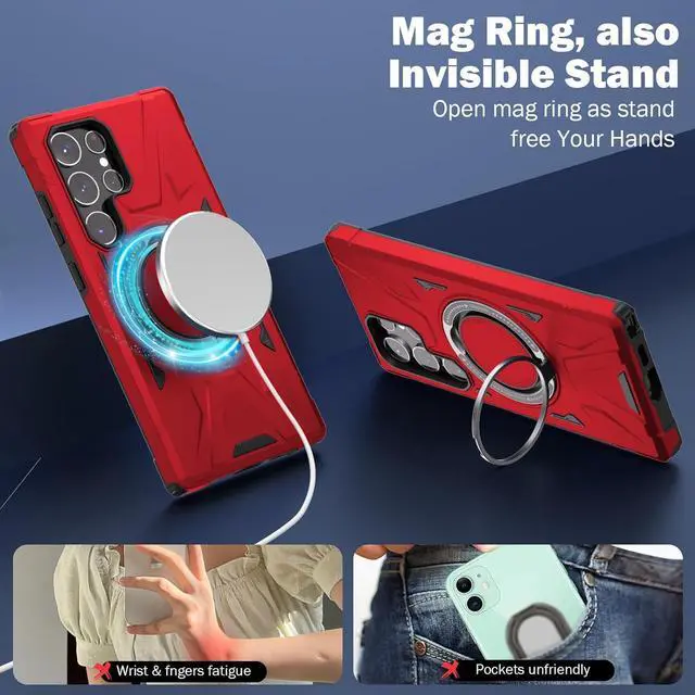Engineered with a focus on safeguarding and endurance, introducing the TUFF MagSafe Case for Samsung Galaxy S24 Ultra - an essential solution tailored to the demands of active lifestyles. Beyond mere protection, this case is aligned with modernity, boasting seamless MagSafe compatibility that empowers enhanced charging and functionality. The integrated ring holder kickstand, besides enabling swift texting and convenient viewing during MagSafe charging, transforms into a versatile stand for hands-free landscape or portrait content consumption.