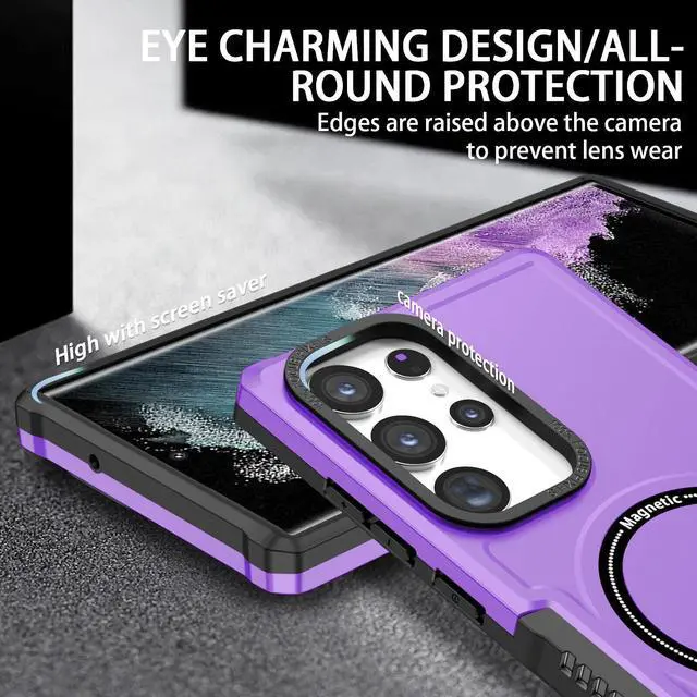 Features: Compatible with Samsung Galaxy S24 Ultra. Extensively drop tested, so you can feel reassured that your device is well protected. Featuring a robust multi-layered design, the case provides extreme protection for your device. This hard-wearing tough case safe-guards your phone against whatever life can throw at, keeping it secure at all times even in the most extreme of conditions. Reinforced cushion corners provide excellent protection where it's most needed. A soft rubberized TPU inner core tightly grips to your phone while absorbs shock and cushions the phone from drops and impact. Patented hybrid case with ridge polycarbonate hard shell for armor-like protection. Non-slip side grip help you from dropping your phone, providing comfortable grip in your hand. Raised front bezel and camera opening prevent scratches to the screen and camera lens. Textured rubbery interior for impact resistant protection. Intuitive button covers for a tactile experience. Built-In MagSafe magnetic ring, and your phone is ready for the snap-on/snap-off satisfaction of MagSafe magnetic wireless charging, magnetic ring mounting, and a whole world of swappable magnetic accessories. Advanced Antimicrobial Technology - Special formula is built into the case keeping it clean, safe and free from harmful microbes.