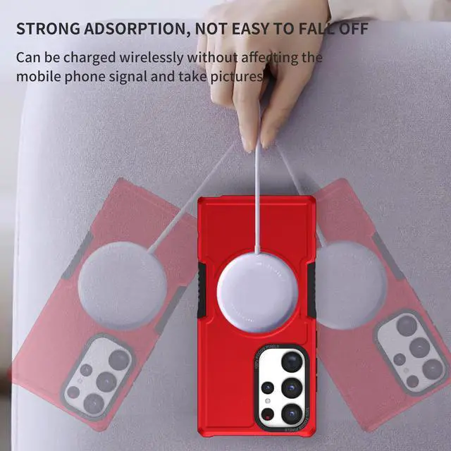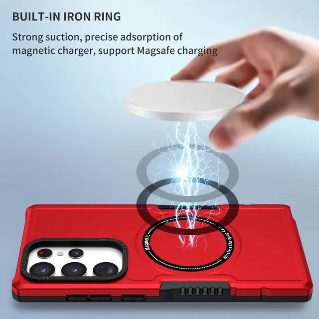 Features: Compatible with Samsung Galaxy S24 Ultra. Extensively drop tested, so you can feel reassured that your device is well protected. Featuring a robust multi-layered design, the case provides extreme protection for your device. This hard-wearing tough case safe-guards your phone against whatever life can throw at, keeping it secure at all times even in the most extreme of conditions. Reinforced cushion corners provide excellent protection where it's most needed. A soft rubberized TPU inner core tightly grips to your phone while absorbs shock and cushions the phone from drops and impact. Patented hybrid case with ridge polycarbonate hard shell for armor-like protection. Non-slip side grip help you from dropping your phone, providing comfortable grip in your hand. Raised front bezel and camera opening prevent scratches to the screen and camera lens. Textured rubbery interior for impact resistant protection. Intuitive button covers for a tactile experience. Built-In MagSafe magnetic ring, and your phone is ready for the snap-on/snap-off satisfaction of MagSafe magnetic wireless charging, magnetic ring mounting, and a whole world of swappable magnetic accessories. Advanced Antimicrobial Technology - Special formula is built into the case keeping it clean, safe and free from harmful microbes.